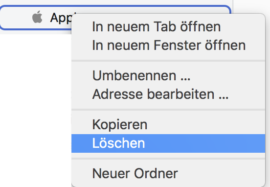 Wenn ich den Eintrag markiere und mit rechts klicke, zeigt sich am Rand oft ein ganz kleiner roter Streifen. Ich weiß, dass da entfernen steht, aber es geht einfach nicht weit genug auf, um auf entfernen zu klicken. Blöd.