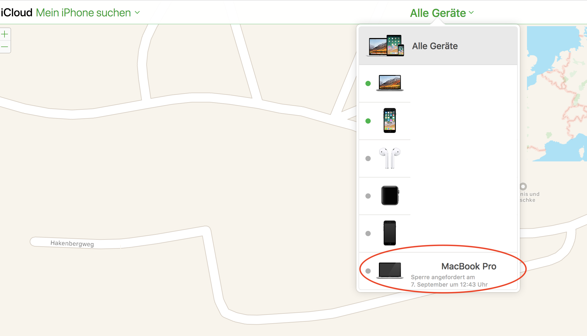 Darauf hin habe ich über "Find" eingestellt: Ton abspielen, Mac Sperren und bei Fund benachrichtigen. ich am Fr