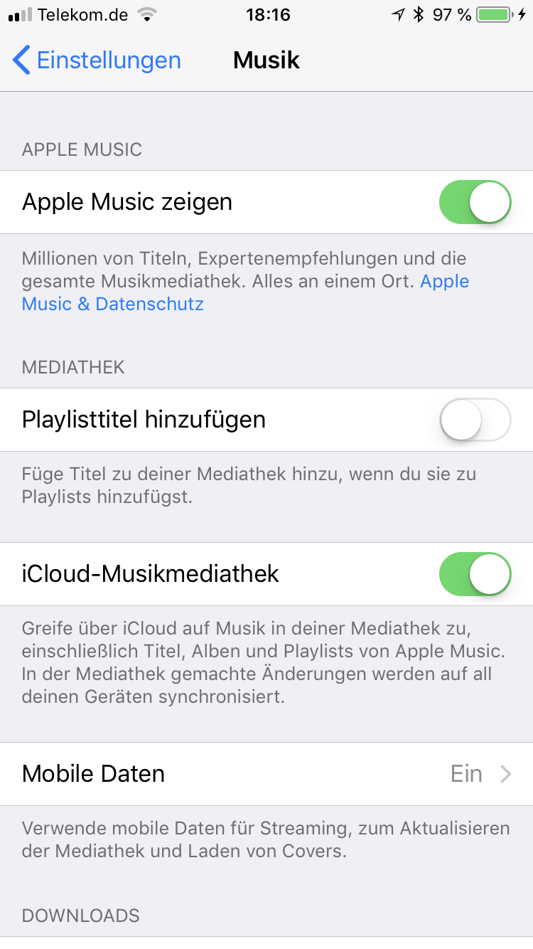 Unter der Menüführung: Einstellungen/Musik/icloud-Musikmediathek