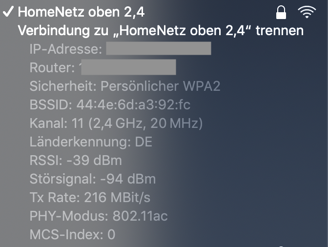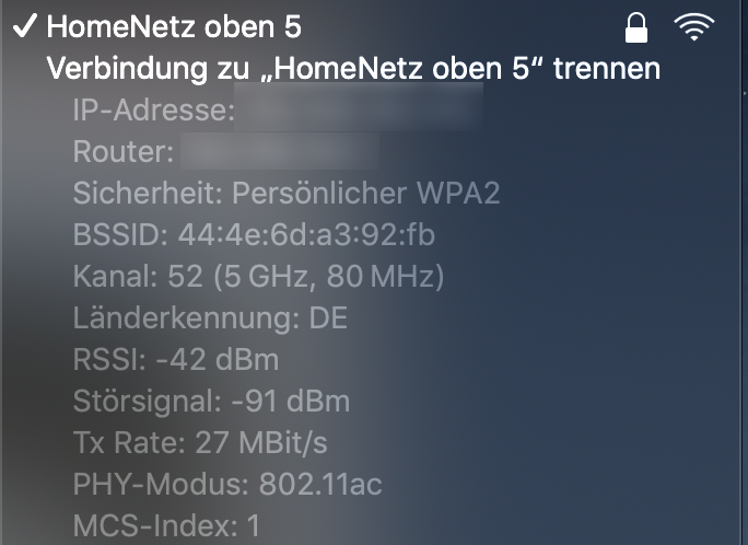 Das Macbook hängt in einem 5Ghz WLAN an einem Amplifikation HD Router.