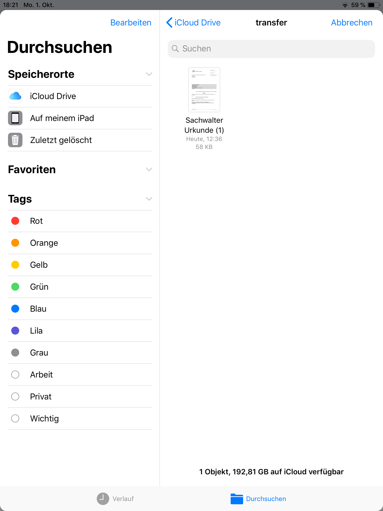 4. Wenn ich in diesem unten auf "Durchsuchen" tippe, bekomme ich die Übersicht in der ich alle Ordner und Dateien durchblättern kann.
