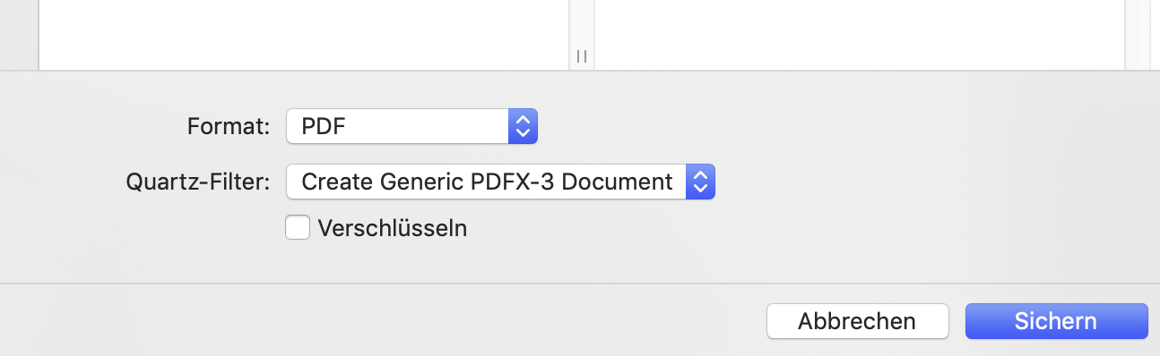 4. darunter bei Quartz-Filter: die Option Create Generic PDFX-3 Document auswählst,