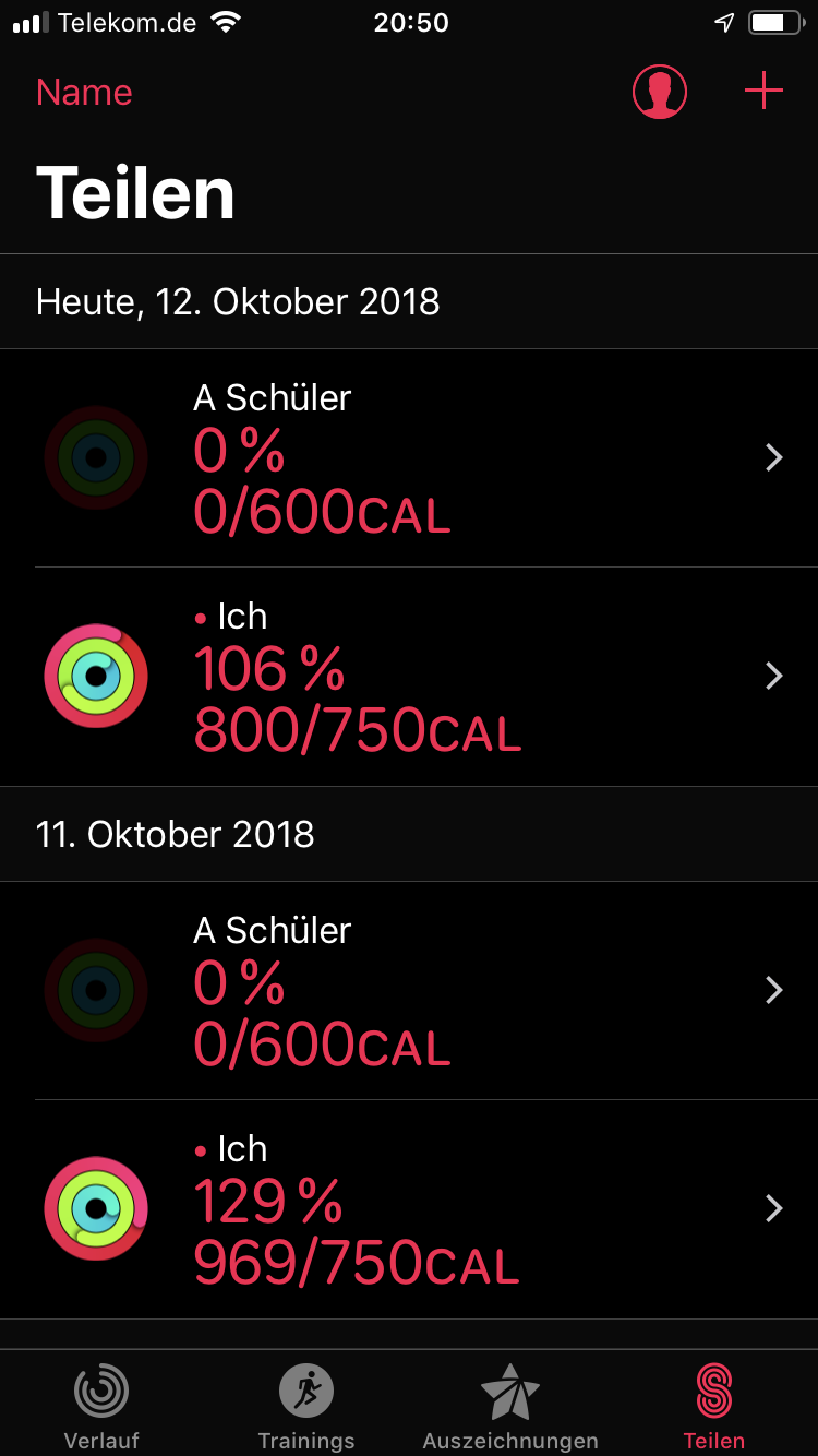 Sind mehrere Apple Watches mit Ihrem iPhone gekoppelt, erscheint der Tab "Teilen" erst dann in "Aktivität", wenn Sie all Ihre Apple Watches auf die neueste Version von watchOS aktualisiert haben.