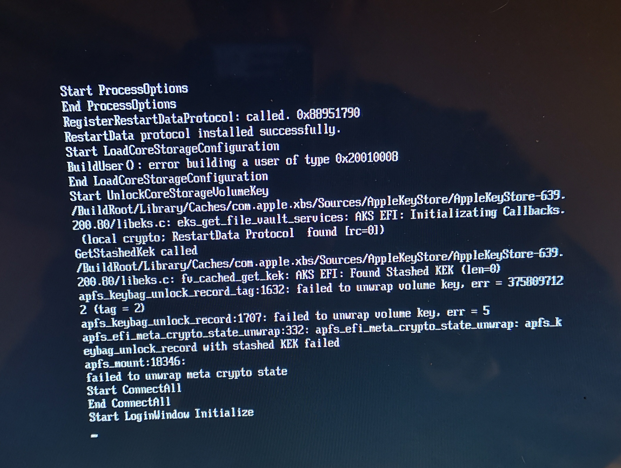 Ich habe versucht den NVRAM und SMC zu löschen mehrfach, nachdem das auch nicht zu funktionieren schien. Versuchte ich es mit dem Safemode, im Safemode kam er bis zu Volume Überprüfung hab ihn die ganze Nacht laufen lassen ist nicht weiter gekommen, wenn ich dann oben links auf Starvolume ging hängte er sich auch auf und zeigte mir keins an . Im single-mode bzw verbose-mods kurz ein Shell Fenster gezeigt schloss es direkt und zeigte wieder das übliche anmelde Fenster an