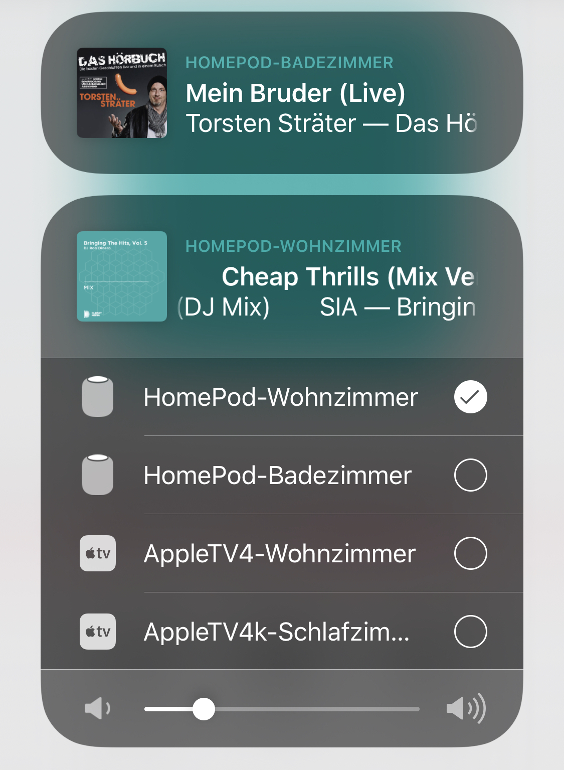 ich habe heute das Problem festgestellt, dass die beiden HomePods sich gegenseitig die Wiedergabe klauen. Wir haben einen HomePod im Badezimmer und einen im Wohnzimmer. Wird im Badezimmer Musik gespielt und im Wohnzimmer kommt das Kommando "Spiele Musik" beendet sich die Wiedergabe im Badezimmer und natürlich auch andersherum. Das gleiche passiert auch wenn man konkret einen Interpreten abspielen möchte, die Wiedergabe auf dem anderen Gerät wird immer beendet.