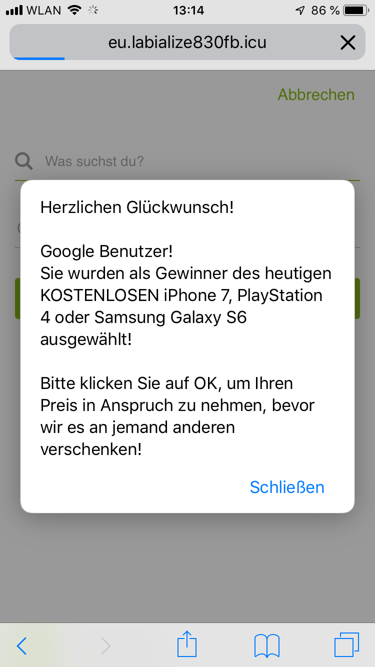 wird empfohlen deinen Verlauf von Safari sowie die Cookies aus Safari zu löschen.