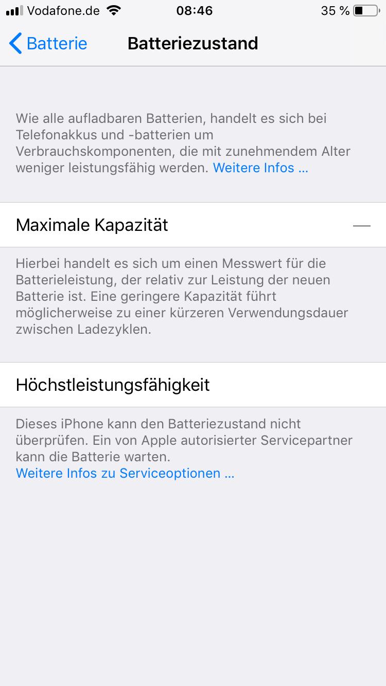 Nach iPhone 6s Akkutausch, unter Einstellungen keine Anzeige mehr zur Batteriekapazität