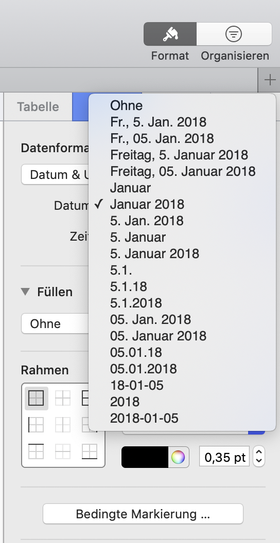 ich versuche in Numbers eine Tabelle zu erstellen und ich wollte 09/18 für den Monat schreiben. Das wird allerdings sofort in 1/2 ersetzt. Anschließend habe ich September 18 versucht, was zu September 0018 ersetzt wurde.