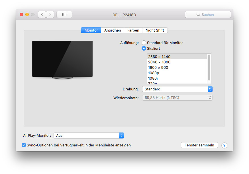 Das macht das MBP mit dem internen Monitor (welches die gleiche Auflösung hat) ja ganz automatisch.