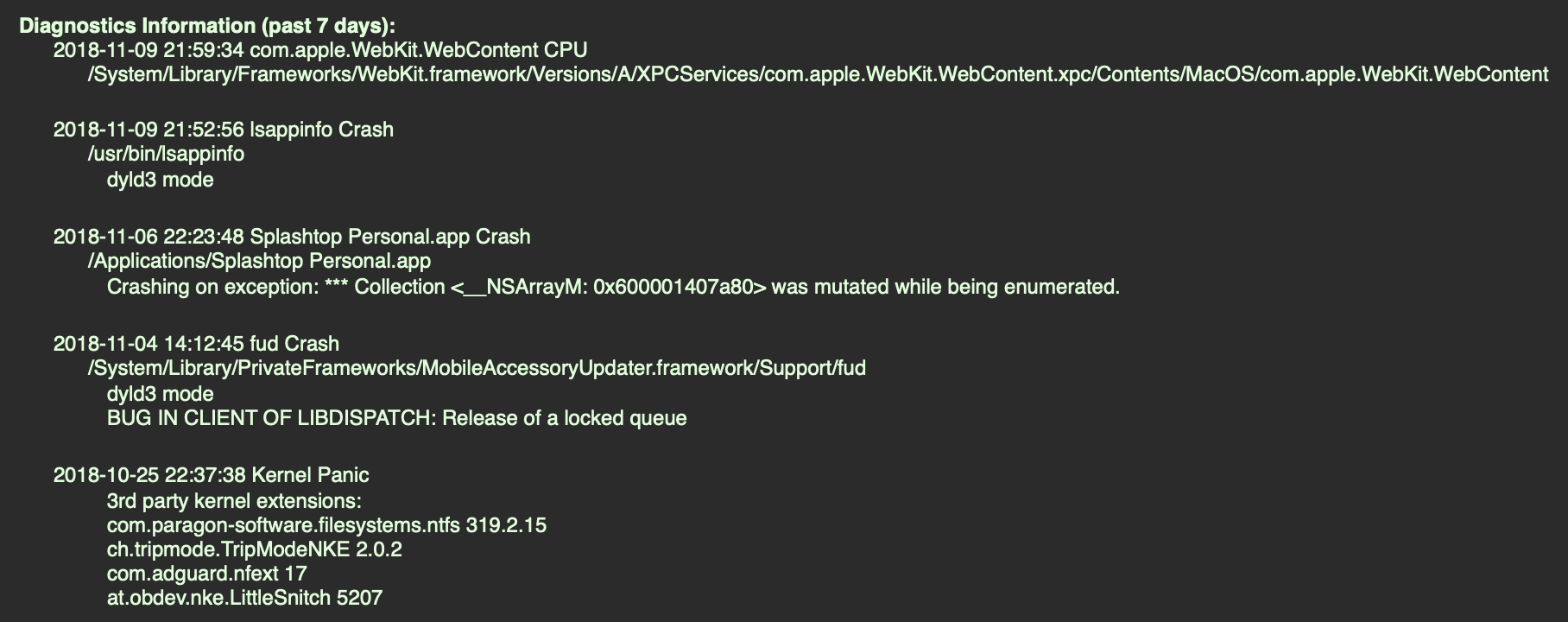 Mit EtreCheck vom AppStore kann ein Bericht erstellt werden und bei Bedarf hier reingesetzt werden