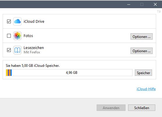 Nun ist es aber bei der Neuinstallation auf dem NB so, dass die iCloud-Win-App mir den Teil "Mail, Kontakte, Aufgaben, pp." gar nicht mehr zu Auswahl stellt. Lediglich iCloud-Drive, Fotos und Lesezeichen kann ich anwählen.