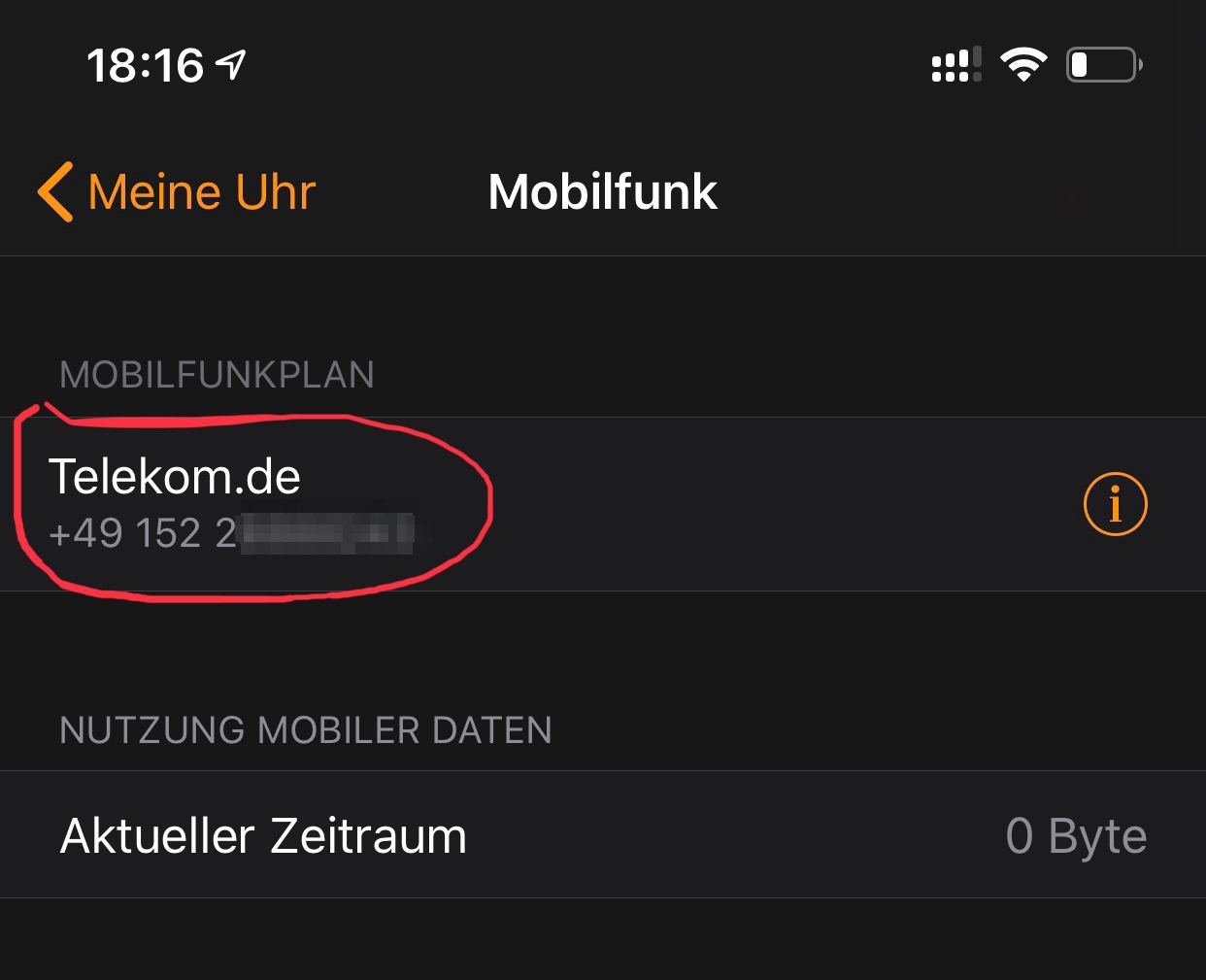 Falscher Mobilfunkplan in Watch App durch eSIM