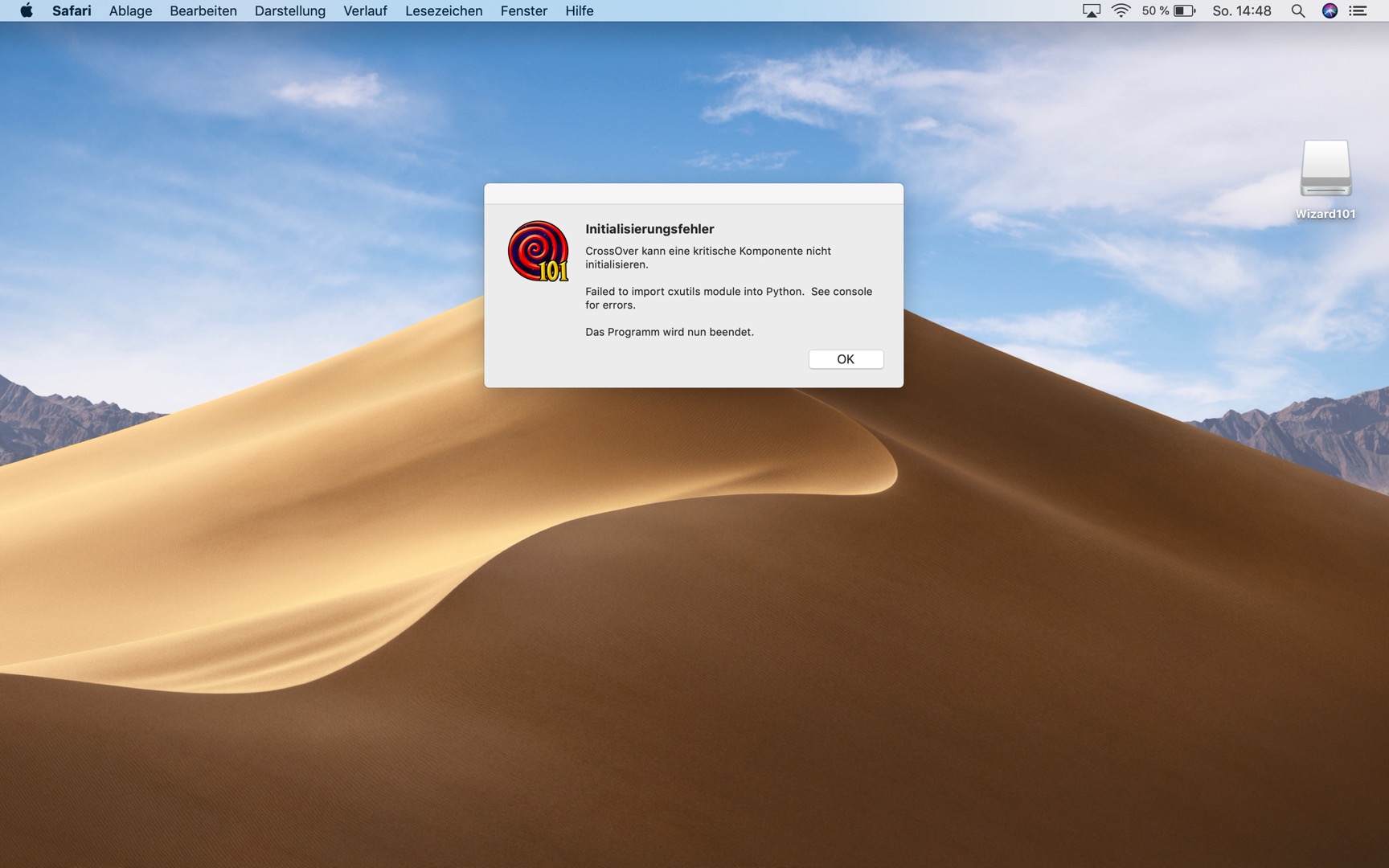 Wizard101 für Mac - Fehler: Crossover kann eine kritische Komponente nicht initialisieren.