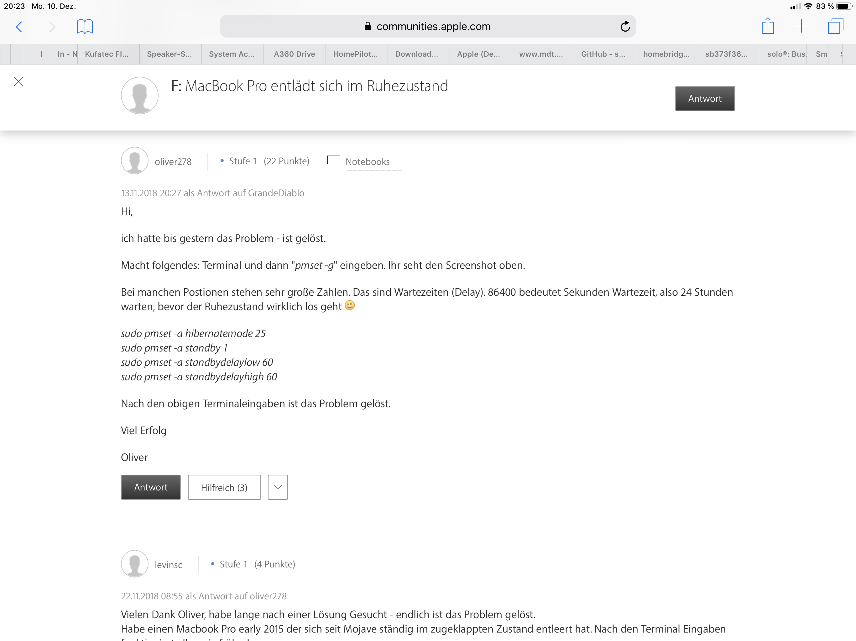 Mein Mac Book Pro hat seit einiger Zeit einen Hohen Stromverbrauch im Ruhezustand (20% in 4h). Es sind keine externen Geräte angeschloßen.