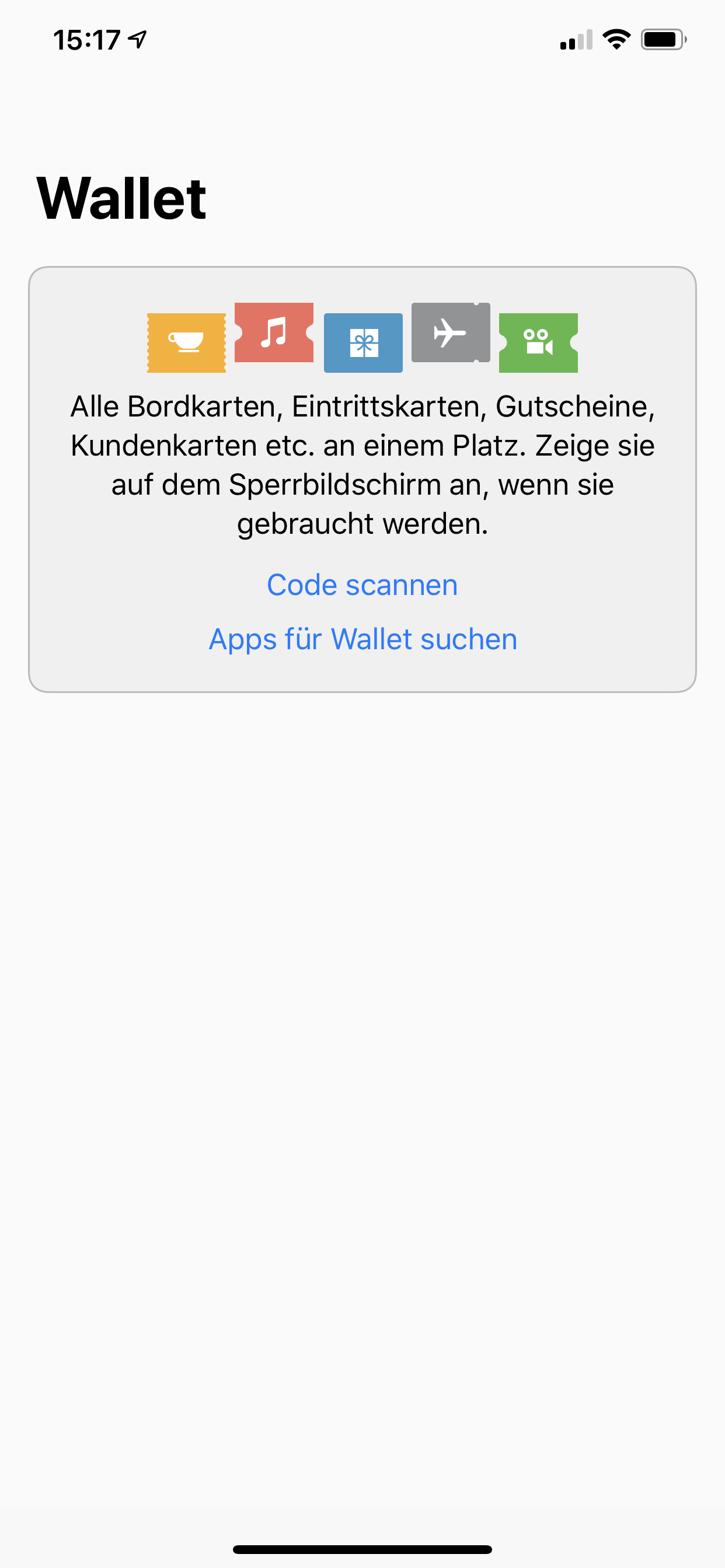 hallo, überall wird gezeigt das ich im Menü unter iTunes und AppStore jetzt den Menüpunkt wallet finde um Karten hinzu zu fügen. Habe ihn aber nicht. Auch wenn ich wallet öffne kann ich keine Karten hinzu fügen