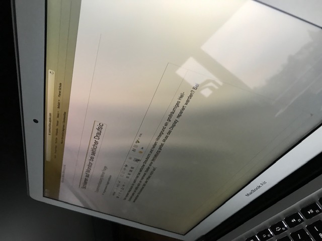 Das scheint nur eine Spiegelung zu sein. Außerdem wer arbeitet an einem Macbook wenn es schräg aufgestellt ist?