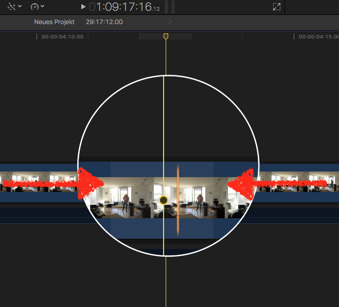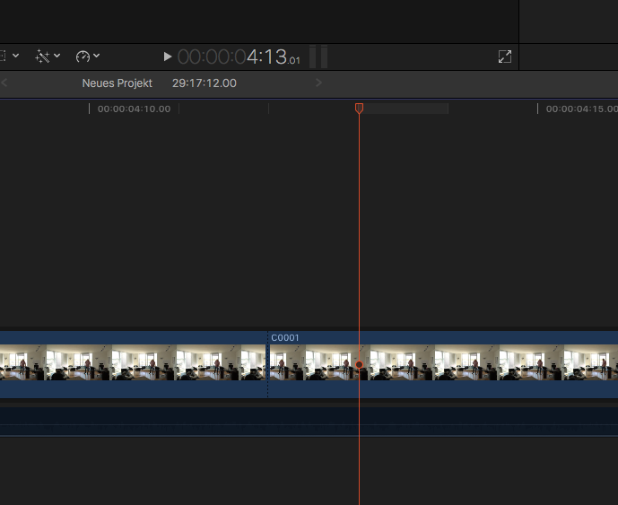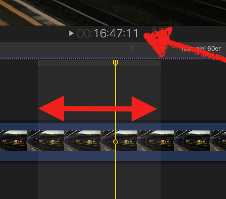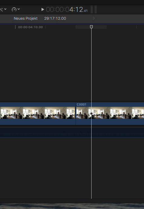 Noch ein Wort zum zoomen: Gewöhn Dir schnell an, FCPX per Tastatur zu bedienen! Wenn Du auf ein frame genau hinfahren möchtest. nutze die Cursor-Tasten, oder Finger auf K und dann J bzw L tippen.