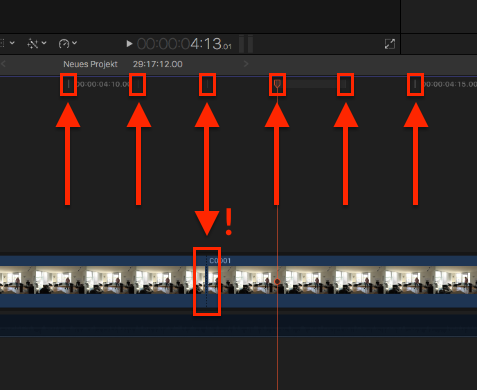 Was mache ich falsch? Das kann doch nicht korrekt sein? Selbst bei iMovie kann ich die Clips zwischen den Sekundeneinheiten editieren.