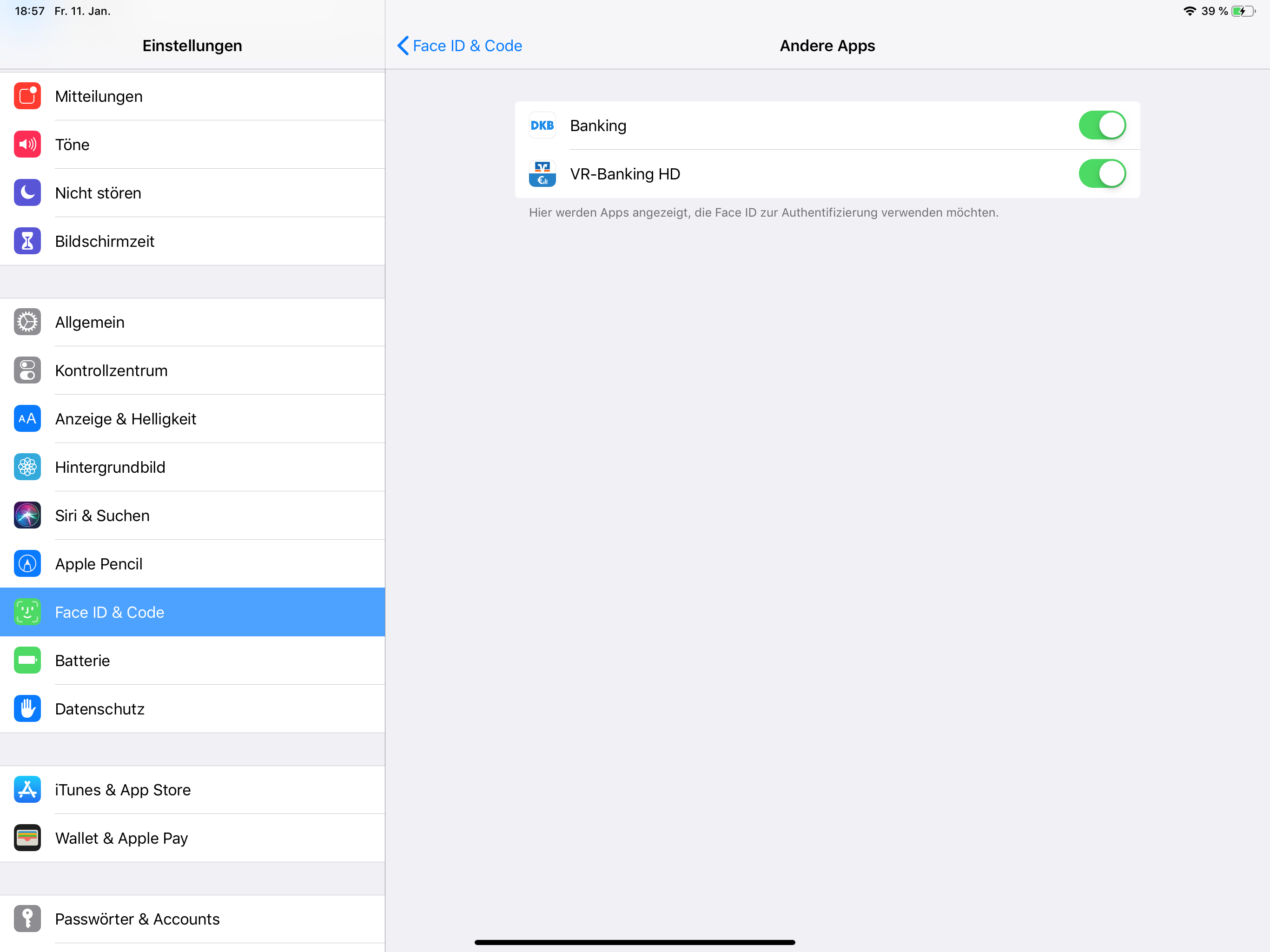 There is no OneDrive App visible in the FaceID & Code Menu (see Picture below) on my iPad.