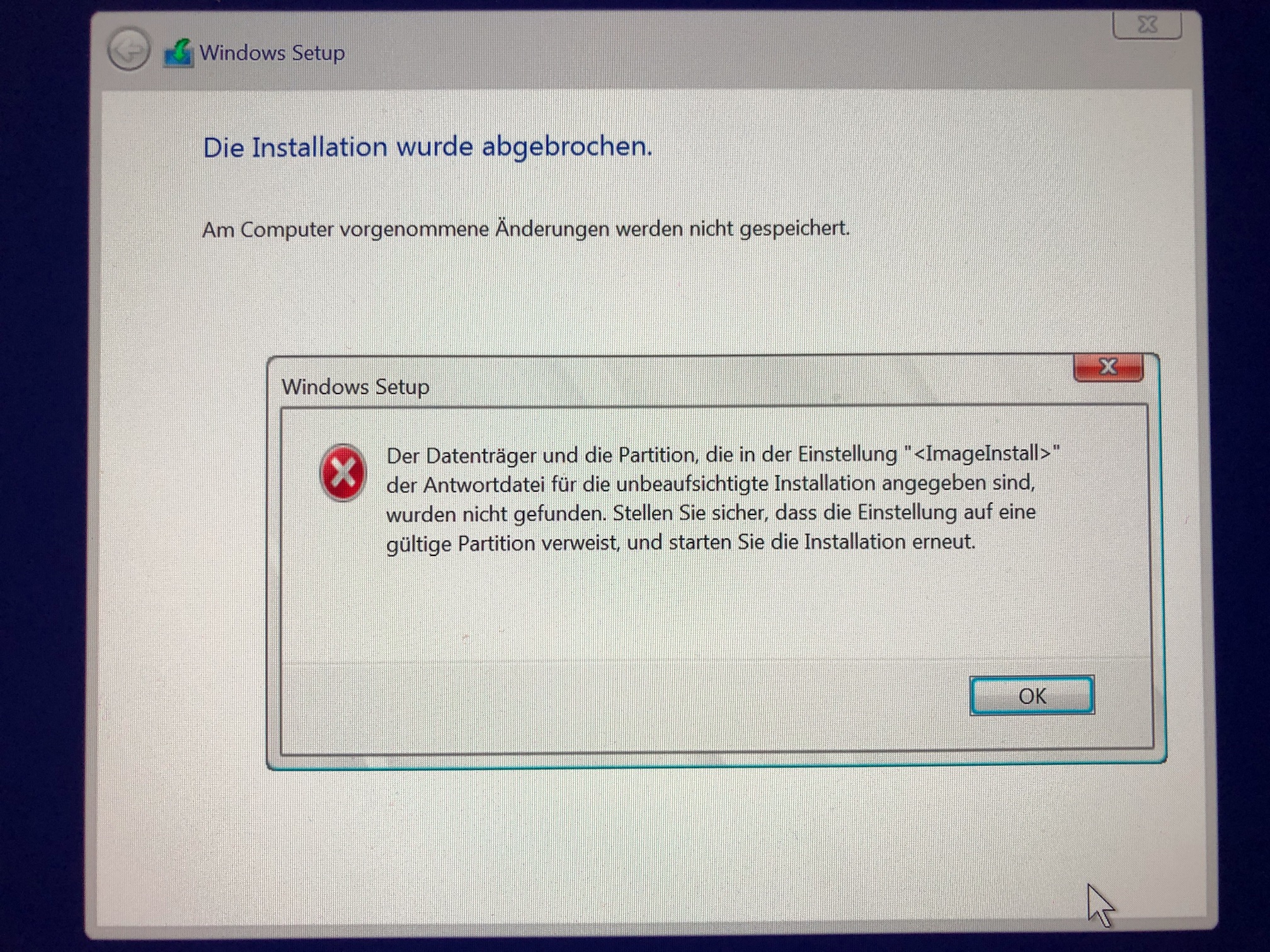 Ich wollte Windows über Bootcamp auf meinem iMac einrichten und bis zum Setup-Fenster von Windows klappt auch alles einwandfrei. Doch beim installieren von Windows erscheint dann diese Fehlermeldung: