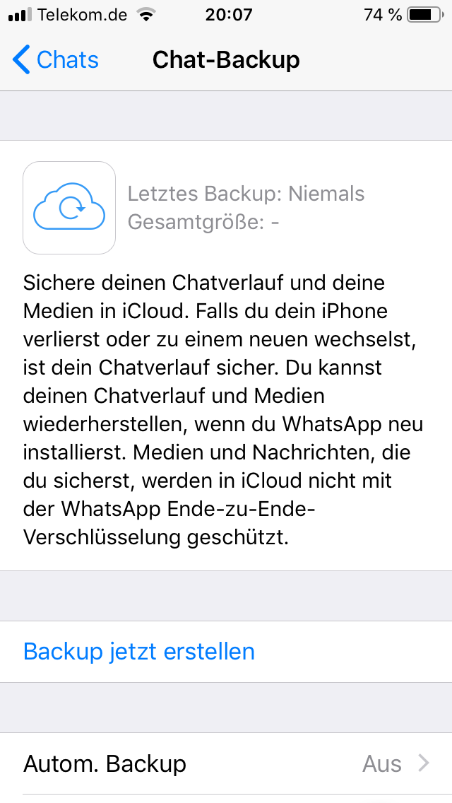 Habe bis jetzt immer "auf diesem Computer" angewählt. Wenn ich nun diese gespeicherten Daten auf mein neues IPhone lade (Backup wiederherstellen), habe ich nicht die aktuellsten Fotos und auch keine aktuellen Chats vom WhattsApp. Muss ich das Back Up nochmals machen auf ITunes, aber bei ITunes die ICloud anwählen? Danke für die Hilfe.