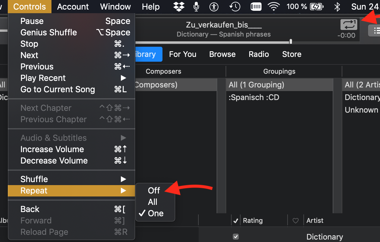 iTunes Musiktitel Endlosschleife ... wie auf Normalbetrieb zurück