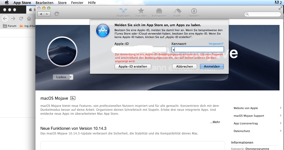 OS X Mavericks - Update nicht möglich, da es kein Eingabefeld für Bestätigungscode gibt