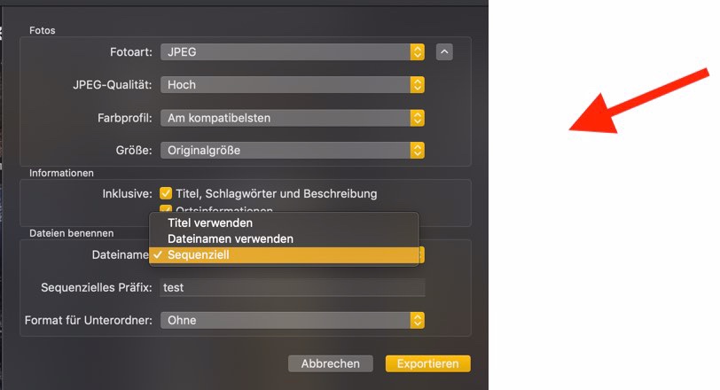 Bei Fotoexport sequentielle Dateinamen vergeben