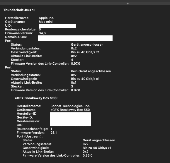 Das ganze ist an einem Thunderbolt mit 40 Gbit/s angeschlossen, also auch kein Flaschenhals