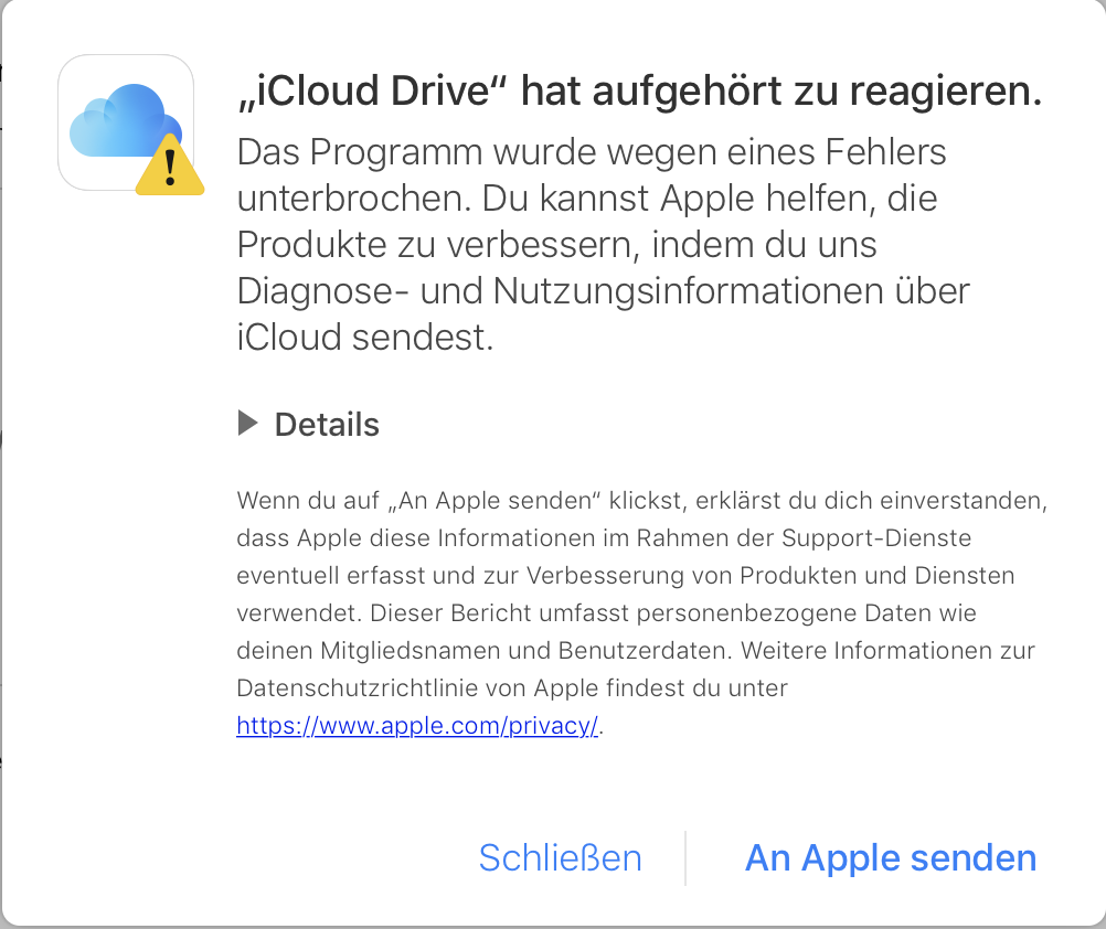 "iCloud Drive hat aufgehört zu reagieren" - Was ist zu tun?