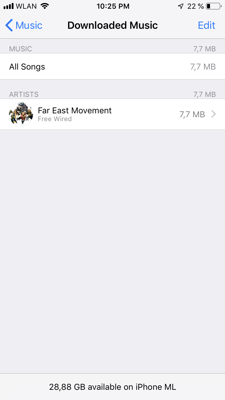 Warum zeigt mir Apple Music unter „Downloaded Music“ noch verfügbaren Speicherplatz an? Mein Telefon hat 128Gb - davon sind noch 80Gb übrig. Apple Music zeigt mir aber nur 28Gb zur verfügung an. Und in meiner icloud sind noch gute 150Gb verfügbar.