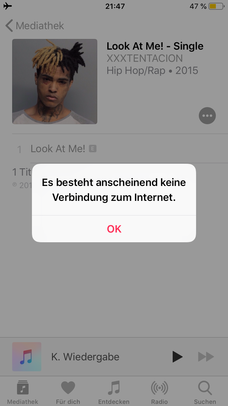 Ich kann nicht einmal geladene Musik hören. Normalerweise müsste ich diese ja trotzdem hören können, auch ohne Internetverbindung. Dies ist aber nicht der Fall.