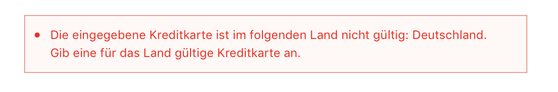 Fehlermeldung - seltsam, weil Kreditkarten ja nicht nur in einem Land gültig sind ...