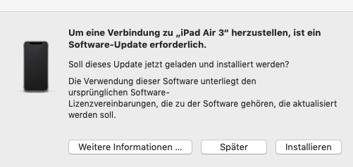 Nach dem das iPad mit dem Rechner verbunden wurde, wurde dieses Popup Fenster geöffnet.