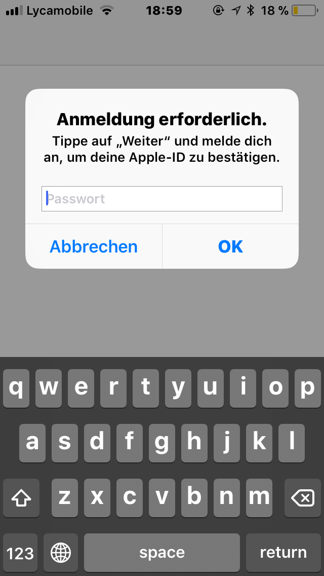Was passiert denn, wenn man auf die Option "Tippe auf OK, um die Anleitungen zur Bestätigung deiner Apple-ID zu lesen" tippt?