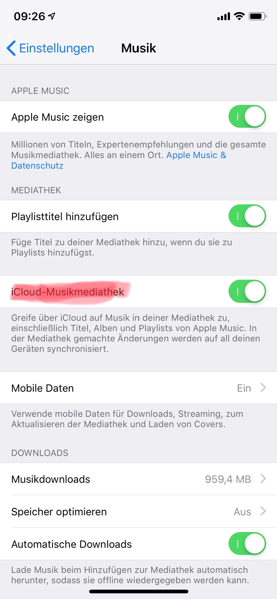 Die Musik aus Apple Music am iPhone XS ist verschwunden