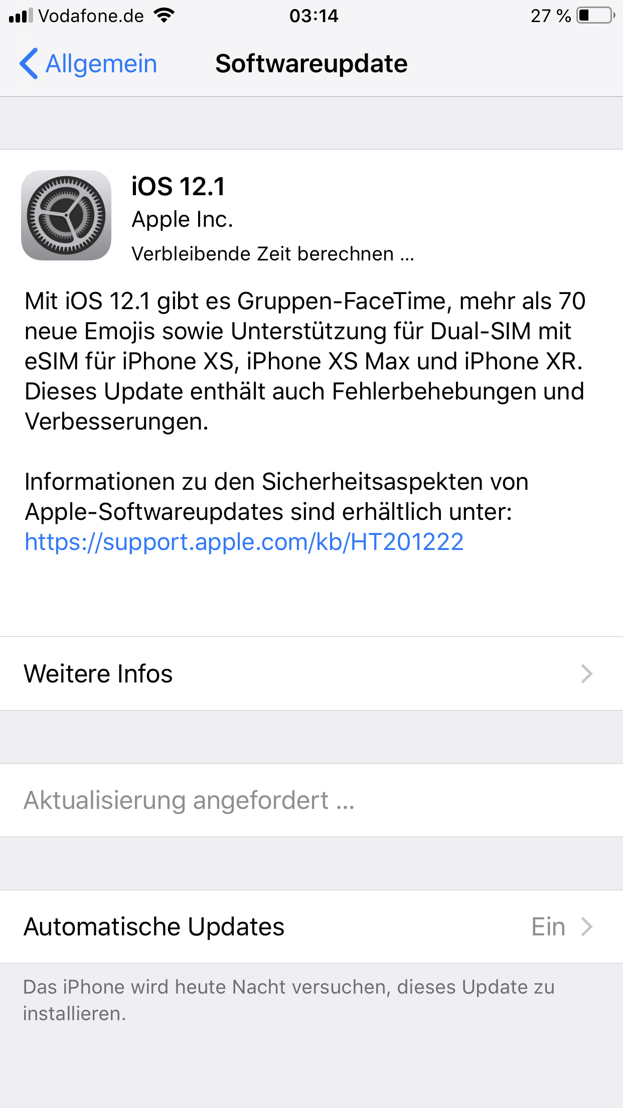 Manchmal kann es etwas dauern. Wenn die Aktualisierung angefordert wird, wird beim Server die Bereitstellung des Downloads "angefragt".