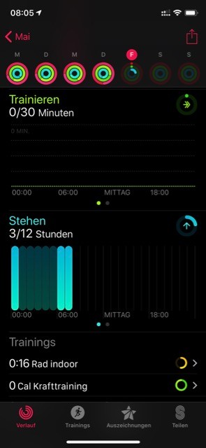 Ich habe am 16.5.19 das Update auf 5.2.1 durchgeführt und am 17.5.19 wie gewohnt trainiert. Die Watch hat das Training aufgezeichnet und in der Health App wird es angezeigt, aber in der Aktivitäten App zählt es nicht. Dabei zeigt die Aktivitäten App an, dass ich ein Indoor Radtraining gemacht habe. aber unter Trainingsminuten steht 0. Es ist eine AW3Cel 42. Meine Frau hat die gleiche in 38mm und bei ihr ist alles wie immer nach dem Update. Ich habe allerdings ein iPhone Xs und sie ein SE. Vielleicht hat es damit zu tun. Neustart von Watch und iPhone hat nichts verändert.