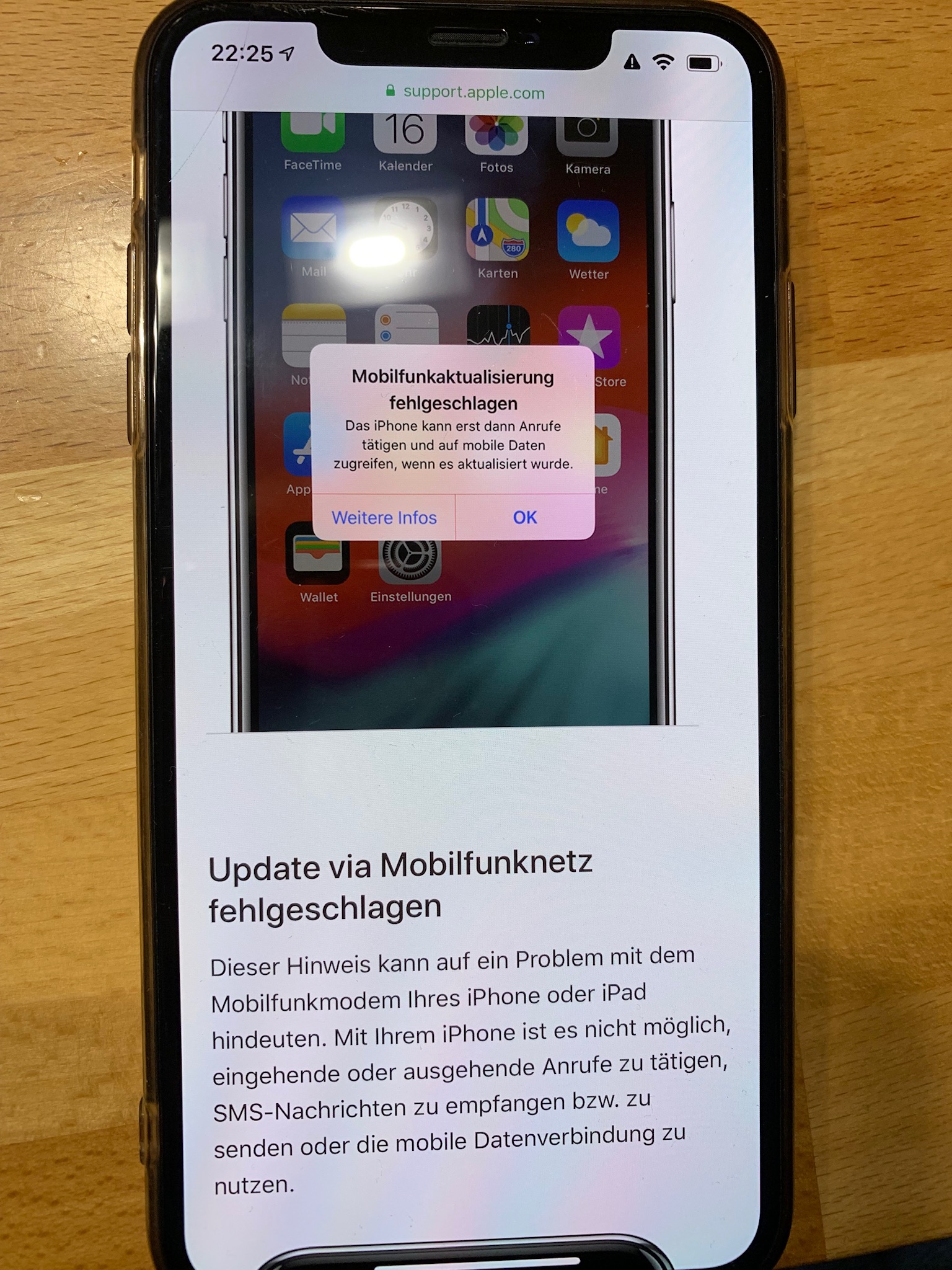 Aber das Beste ist: Obwohl auf der genannten Seite steht, dass das Gerät repariert werden muss, verweigert mir der Support bisher genau dies. Grund ist die Standardvorgehensweise. Bevor das Gerät eingeschickt werden kann, muss es zurückgesetzt werden. Damit ist der Fehler aber auch für unbestimmte Zeit zurückgesetzt. Nach dem Versand kommt das Gerät unrepariert zurück. Grund: Kein Fehler feststellbar. Ich habe die letzten Wochen sämtliche Recovery-Arten durchgespielt, Eine neue SIM-Karte vom Mobilfunkbetreiber bestellt, usw.