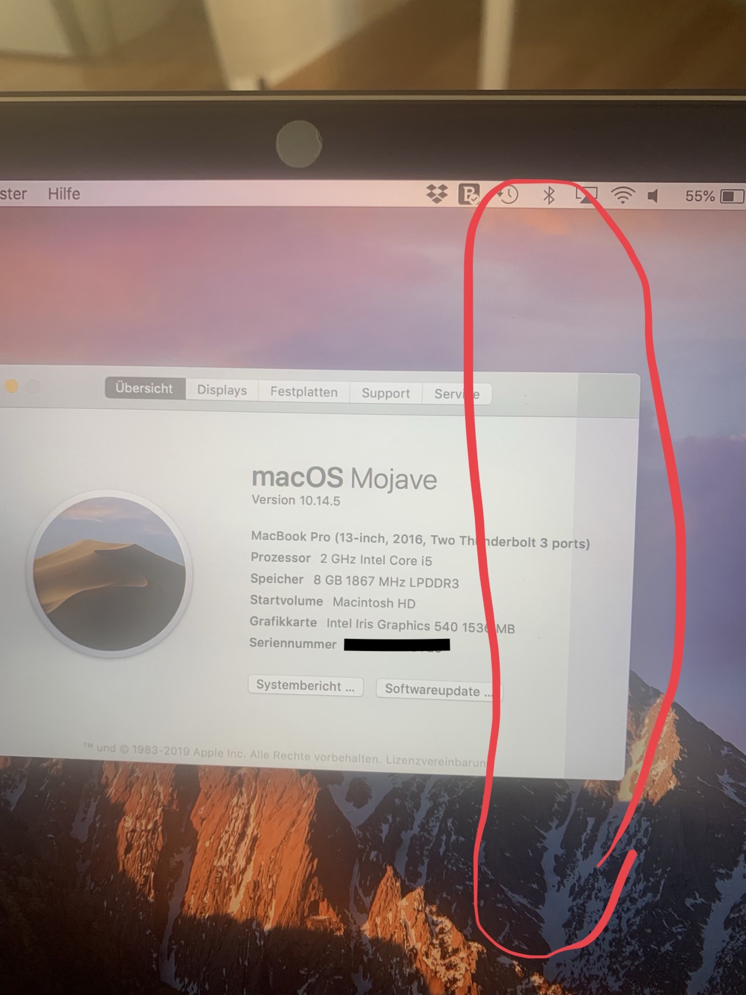 Dunkler schattenartiger ca. 2cm breiter streifen auf rechter Seite des Bildschirms nach update auf 10.14.5 auf macbook pro aufgetaucht... vielleicht ist der Zusammenhang mit dem update auch nur zufall... was kann ich tun? das update erneut drüberlaufen lassen hat nichts gebracht...