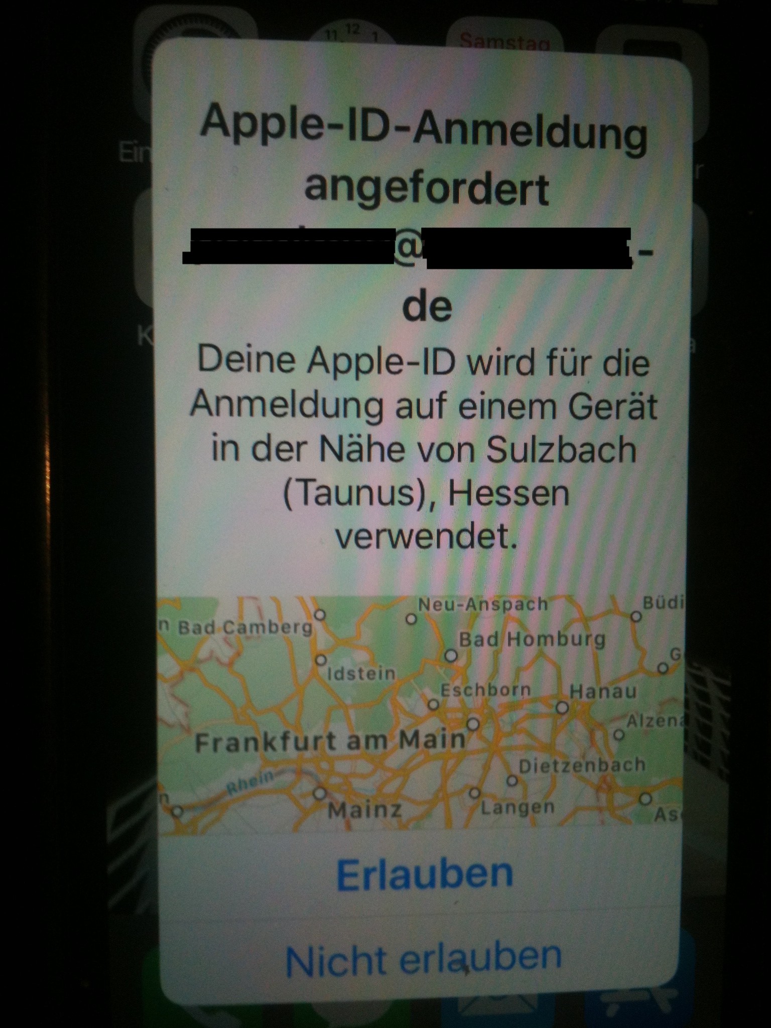 "Deine Apple-ID wird für die Anmeldung auf einem Gerät in der