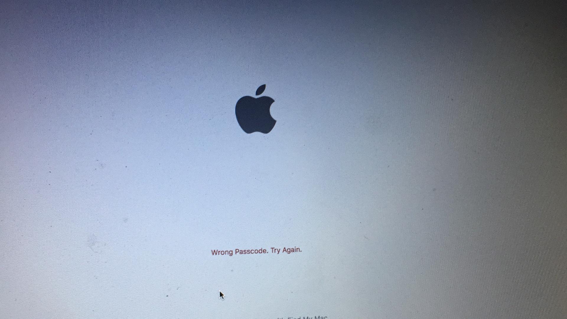 Hallo ich habe meinen mac verloren nun wieder gefunden. Will ihn entsperren aber kommt nur dieses bild hier. Die Felder für die Eingabe des Codes erscheinen nicht mehr!?! Was kann ich tun?