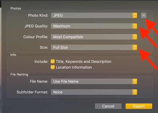Wenn ich meine Fotos im NEF(RAW) Format exportiere, um JPEG zu erhalten werden sie zu sehr verkleinert