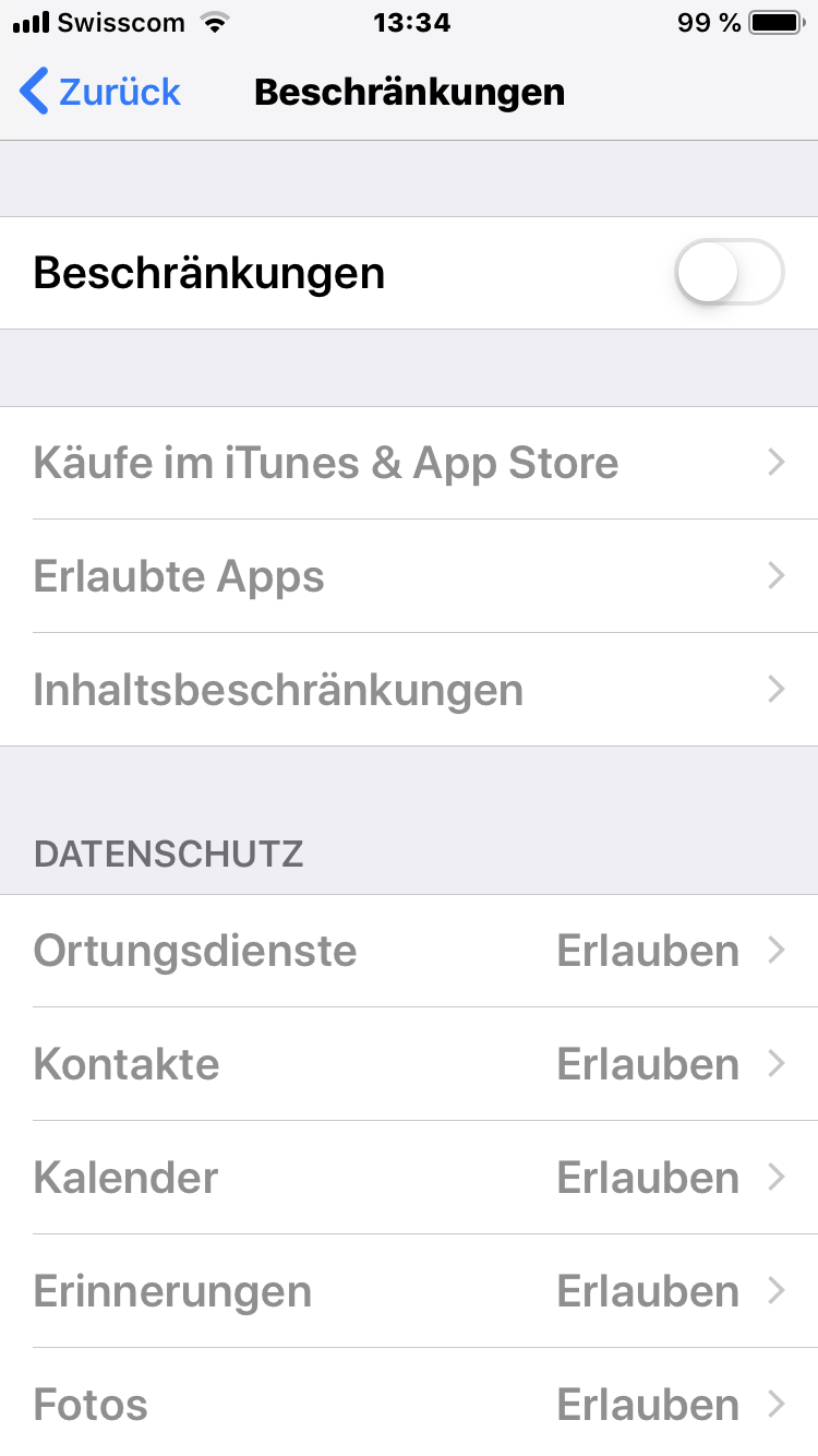 Ich habe keine Beschränkung der Bildschirmzeit eingesstellt