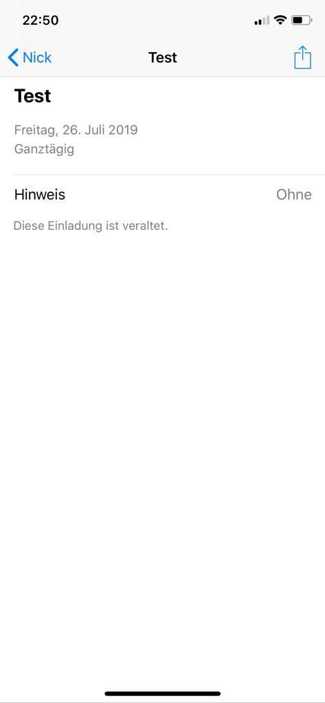 Jedes Mal wenn ich mir ein Event als ICS Datei von meinem Android Handy an mein IPhone X zuschicke und es anklicke, taucht ein Screen auf, wo mir mein Event angezeigt wird.