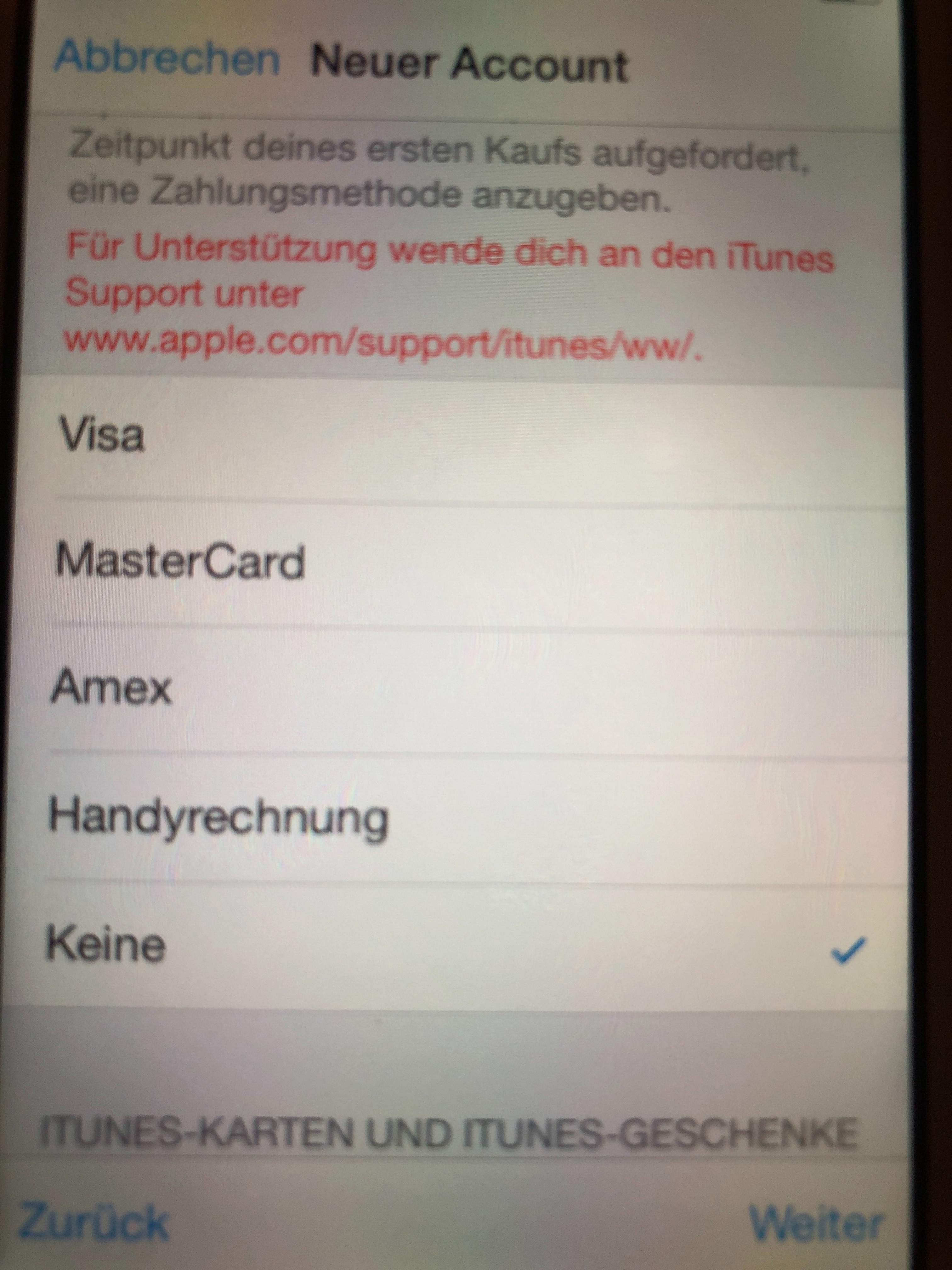 Kann mich nicht beim iTunes/App Store anmelden