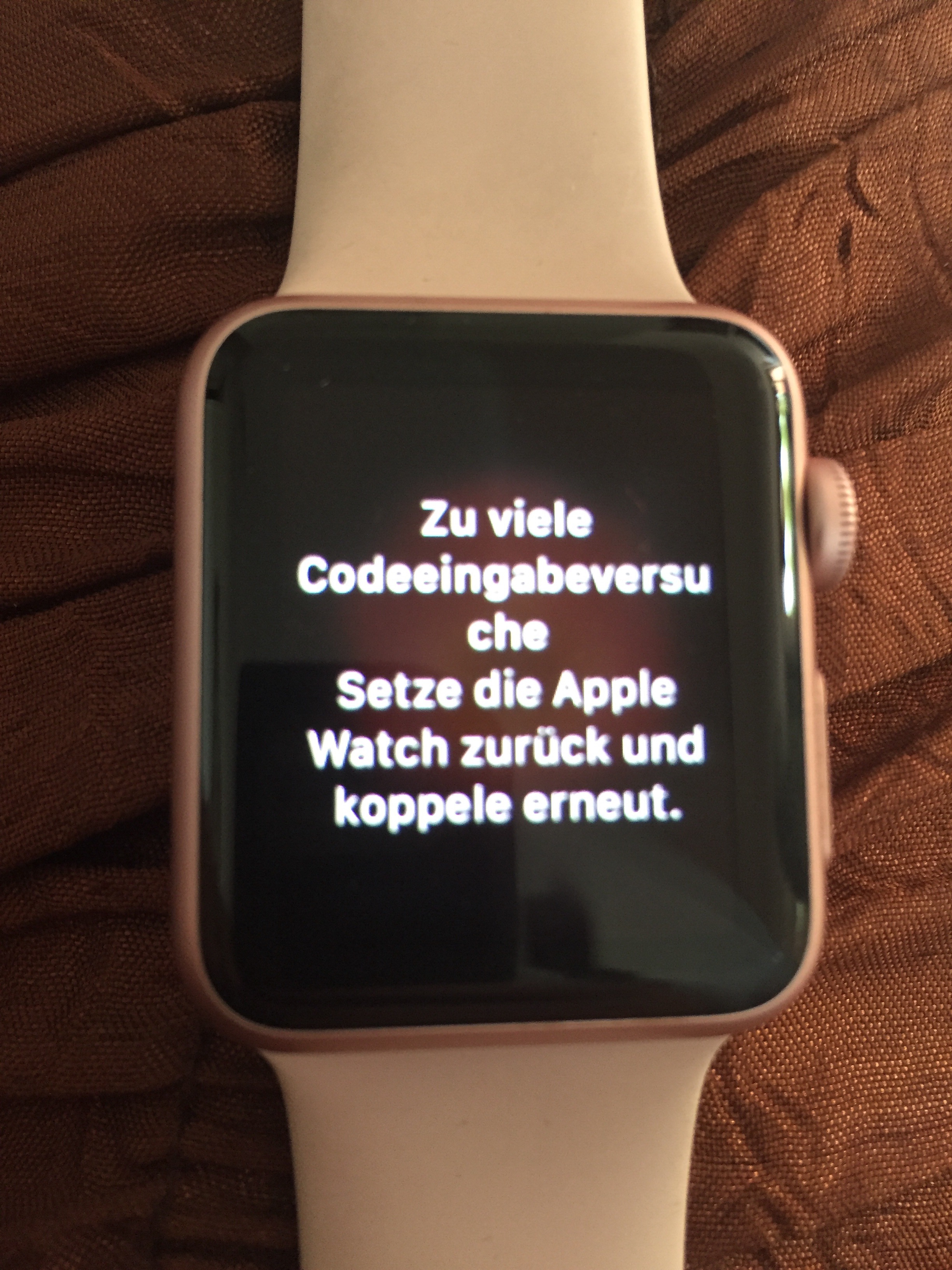 Ich habe eine appel watch serie 1.ich habe so viele mal die falsche code gegeben und jetzt ist mein watch gesperrt.ich kann nicht wieder meine appelwatch koppeln.konnen Sie bitte mir helfen für neu entkoppeln?