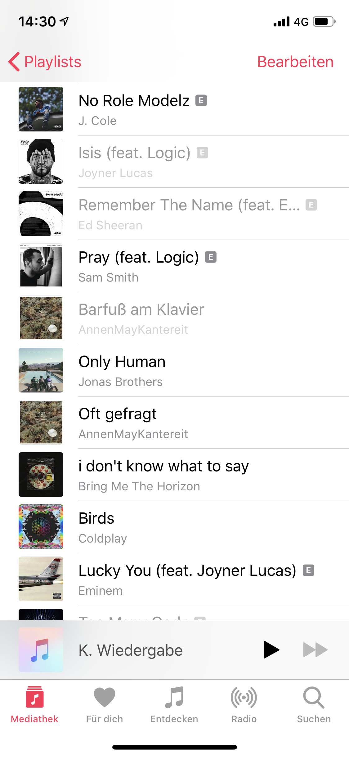 Hallo, ich habe einige Playlists in denen nun immer mehr Lieder grau dargestellt werden und wenn ich darauf klicke wird es als nicht verfügbar angezeigt. Das komische daran ist, dass ich bis vor ein paar Tagen alle Songs ganz normal hören konnte und vorallem kann ich die Songs trotzdem hören wenn ich auf den „Zufällig abspielen“ Button der Playlist klicke und dann solange auf nächster Song klicke bis das Lied kommt. Das ist aber bei manchen Playlisten echt nervig, da die mehr als 100 Songs enthalten und ich einfach gerne auf den Song klicken würde. Ich habe auch das Gefühl das wird jeden Tag mehr.