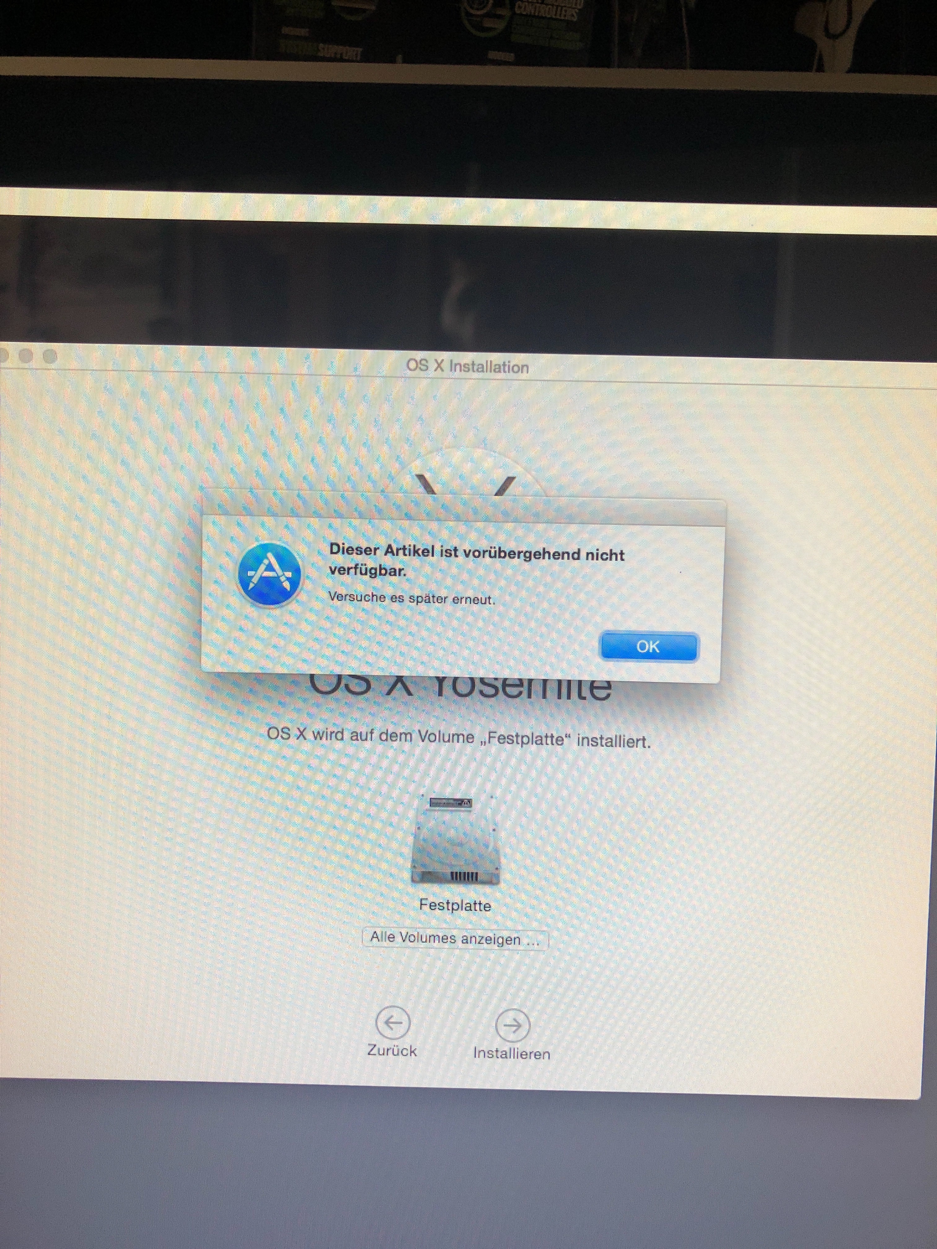Ich wollte meinen alten Mac mal neu machen weil er etwas träge geworden ist und wollte das Betriebssystem neu runterladen es steht aber andauernd da dass dieser Artikel vorübergehend nicht verfügbar ist was kann ich dagegen tun