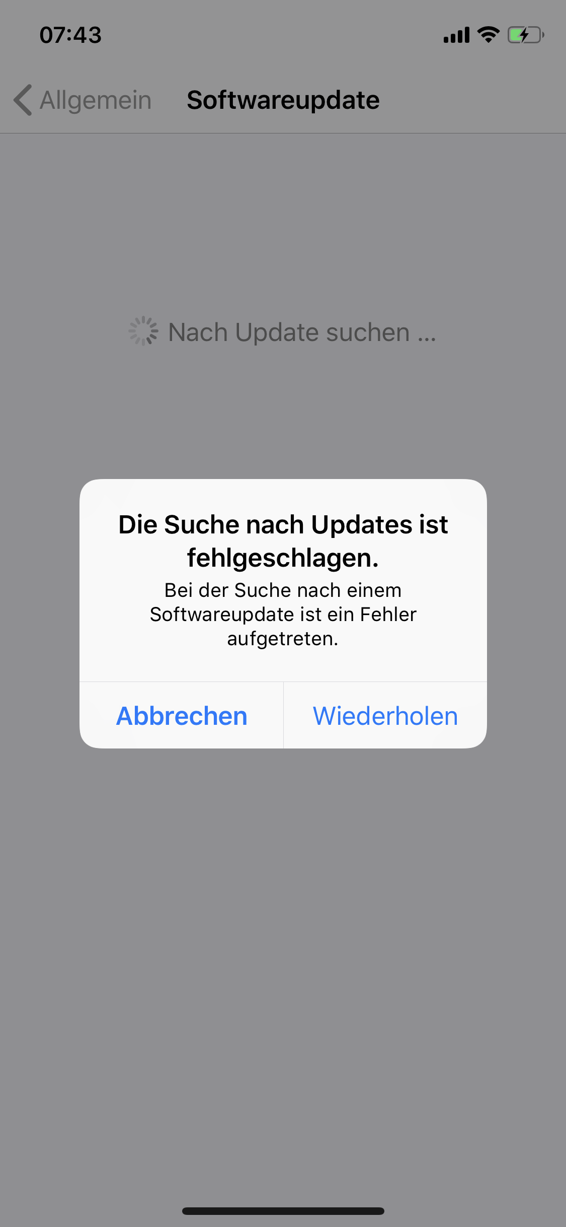 Beim Versuch das iPhone zu aktualisieren kommt immer nur die Meldung: "Die Suche nach Updates ist fehlgeschlagen". Ein Netzwerkproblem kann man ausschließen und ein Hard-Reset hat auch nicht geholfen. Über Itunes ließ es sich problemlos auf iOS 12.4.1 Updaten, die Fehlermeldung am Handy kommt aber nach wie vor wenn ich auf Einstellungen-->Allgemein--> Softwareupdate gehe.